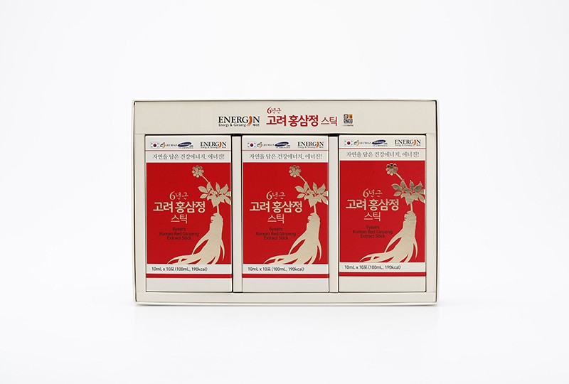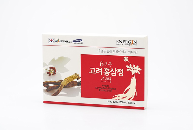 | 원료성분 | 6년근 홍삼농축액 (6년근, 국산: 조사포닌 70mg/g, 고형분60%이상)7%, 식물혼합농축액 (고형분 55%이상, 황기12.65%, 당귀12.65%, 감초, 계피, 작약, 백출, 지황, 천궁, 복령)7%, 말토덱스트린, 영지농축액, 자몽종자추출물, 정제수 |